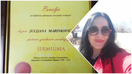 Македонската поетеса Јулијана Маринковиќ е прогласена за почасна граѓанка на историскиот Град Сирмијум за оваа година