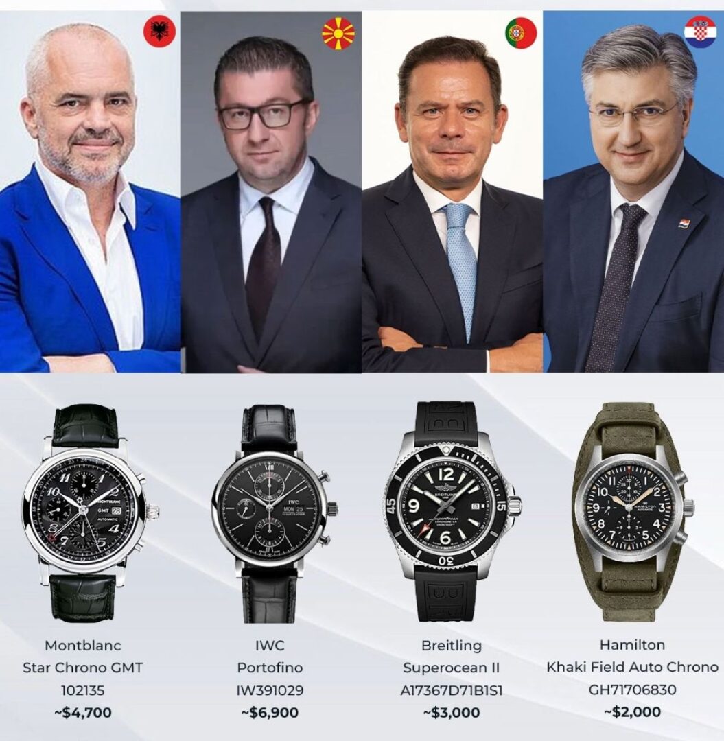 Меѓу оние за кои имаат информација, најскапи часовници на раката имаа премиерот на Белгија Александар де Кро со Франк Милер од 19.000 долари, претседателот на САД, Доналд Трамп, кој често се гледа како носи Vacheron Constantin, вреден 15.000 долари и Роберт Фицо со IWC од 15.000 долари.