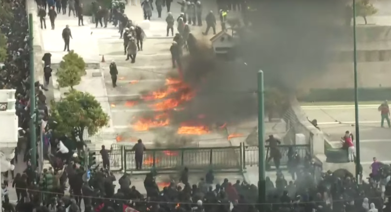 Сериозни инциденти се случија во центарот на Атина по завршувањето на официјалниот дел од протестот за двегодишнината од железничката несреќа кај Темпи.