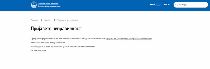 Неправилности во здравството отсега ќе може да се пријавуваат и на веб-страницата на Министерството за здравство, информира министерот Азир Алиу на денешниот брифинг со новинарите.