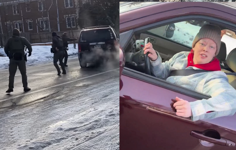 Во видеото од 37 секунди, се слуша како Рене Гуд вели: „Во ред е, не ти се лутам“, додека агентот шета околу нејзиниот автомобил и го снима, со куче на задното седиште.