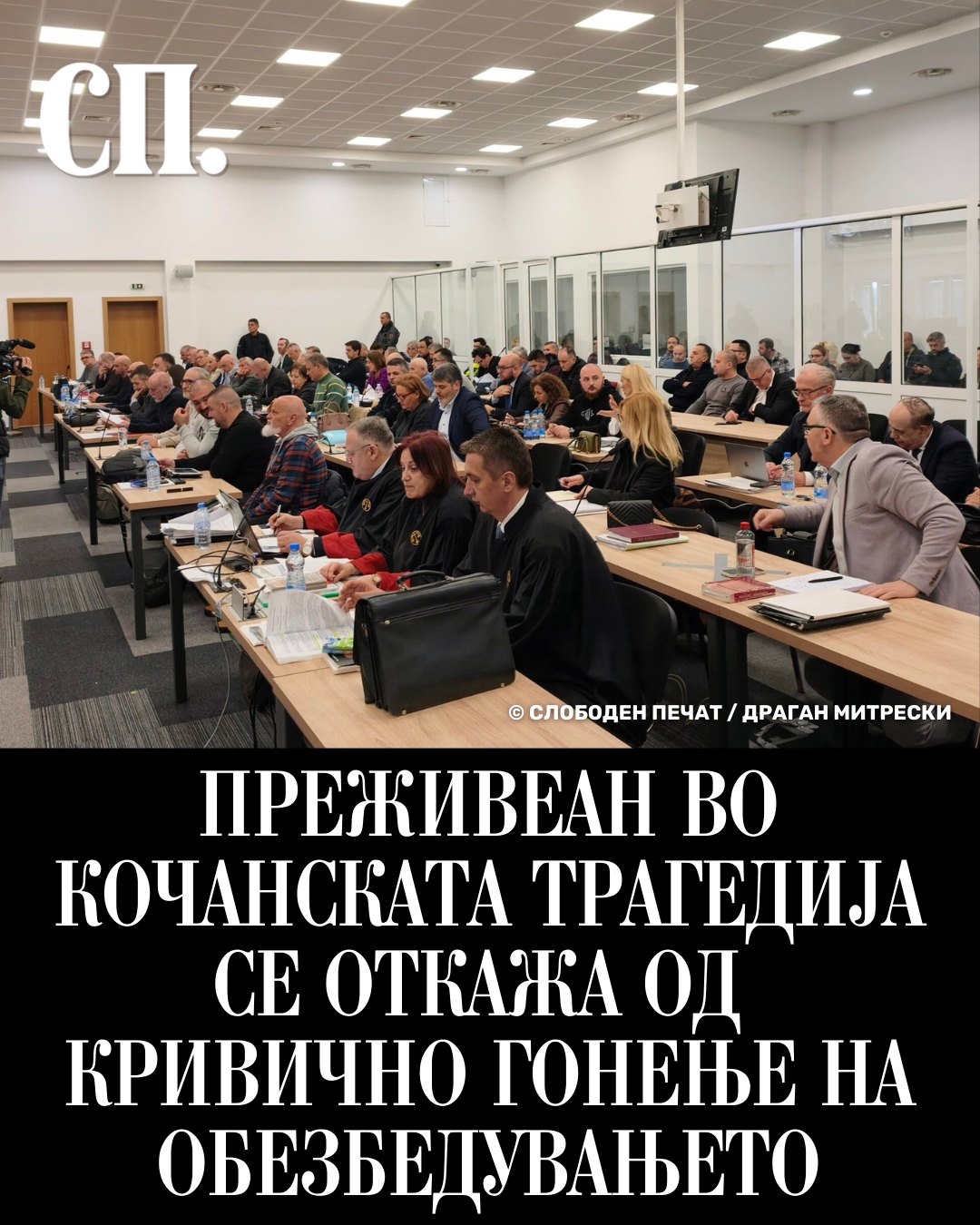 Преживеан и повреден во пожарот во „Пулс“, Кристијан Китанов се најде во непријатна ситуација кога адвокатот на еден од обвинетите Јовица Страшевски побара да се изјасни дали се приклучува кон кривичниот прогон и на обезбдувачите за кои претходно кажа дека му го спасиле животот.