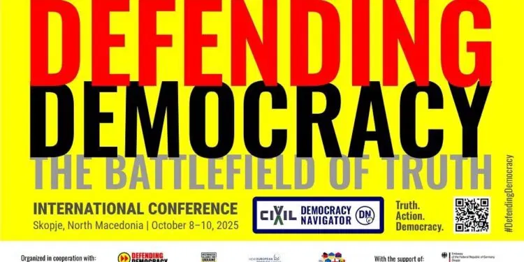 Меѓународната конференција „Одбрана на демократијата: Боиште на вистината“, што се одржува во Скопјe од 8 до 10 октомври 2025 година, е организирана од ЦИВИЛ – Центар за слобода. Конференцијата е ко-организирана во партнерство со членовите-основачи на Глобалната иницијатива „Одбрана на демократијата“ – Новиот европски граѓански форум (меѓународен) и Медија дијалог (Германија) – и во соработка со партнерските организации на Вестминстерската алијанса за Украина, вклучувајќи ги Centro Studi Internazionali (Италија) и Здружението Жан Моне (Франција).