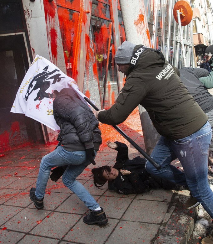 Демонстрантите се обидоа да упаднат во зградата на претставништвото на Европската унија, користејќи црвена боја, петарди и молотови коктели. Околу 10 полицајци се повредени, а шест лица се уапсени.