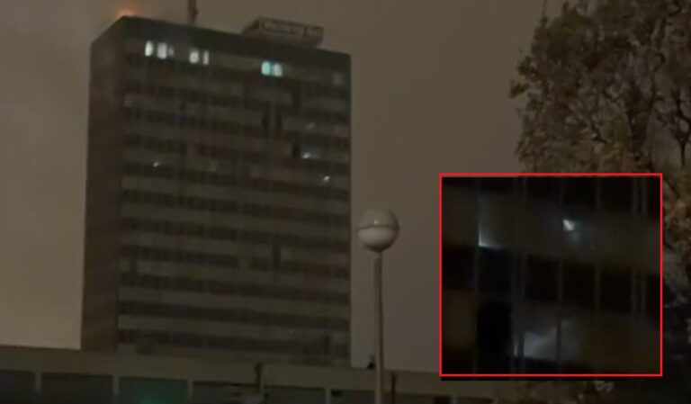 На социјалните мрежи кружи снимка направена од паркингот спроти „Вјесник“, каде се гледа како некој со светла се движи по катовите, а потоа на врвот се појавува оганот.