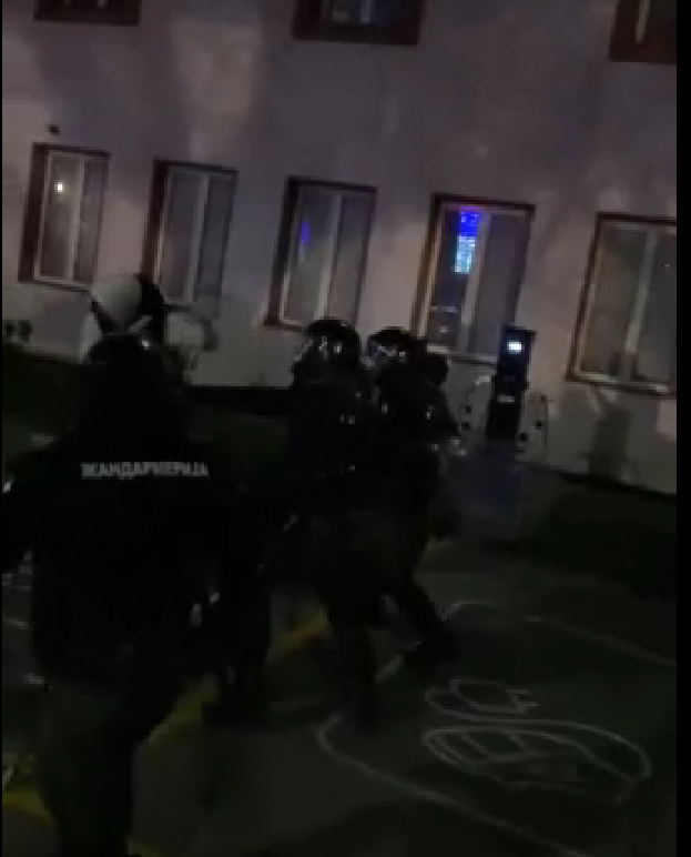 На едно видео се гледа и жандармерија како од улицата Абардарева доаѓа кон РТС и веднаш ги напаѓа насобраните студенти.