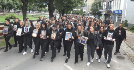 Во молк, без транспаренти и со фотографии од починатите деца, родителите и семејствата на починатите во пожарот во клубот „Пулс“…