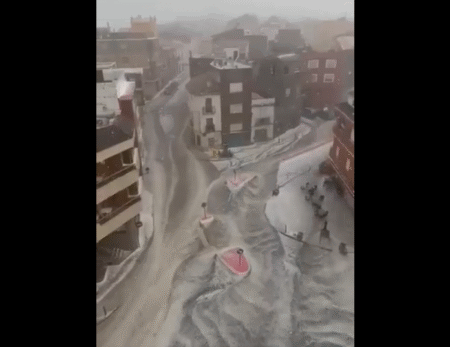 Силно невреме вчера го погоди шпанскиот регион Валенсија, претворајќи ги улиците во реки и покривајќи ги автомобилите со слоеви град.