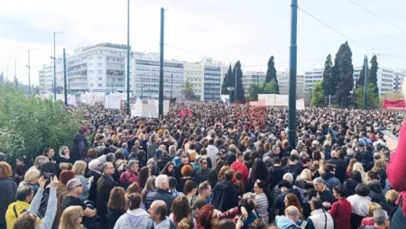 Илјадници граѓани на сите возрасти, масовно протестираа во центарот на Атина поради железничката несреќа кај Темпи во февруари 2023 година,…