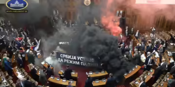 По инцидентот во српскиот Парламент, полиција е распоредена во холот, а пред Собранието се собираат студенти и граѓани. Претседателката на…