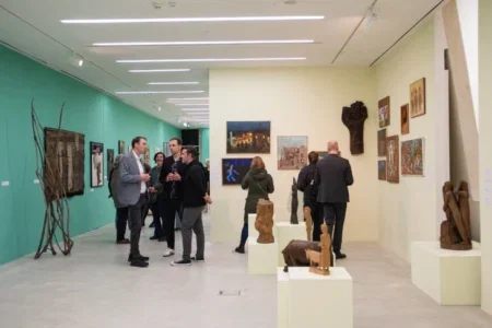 Уметнички дела од 87 автори од колекцијата на Музејот на современата уметност во Скопје се претставени на изложбата „Ткаење светови…