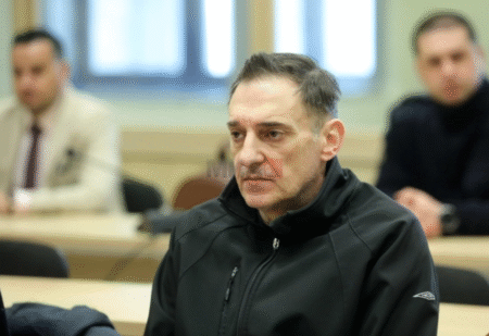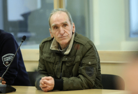 Обвинетиот Велибор Манев на денешното судско рочиште во Основниот кривичен суд за убиствата на Вања Ѓорчевска и Панче Жежовски, го…