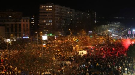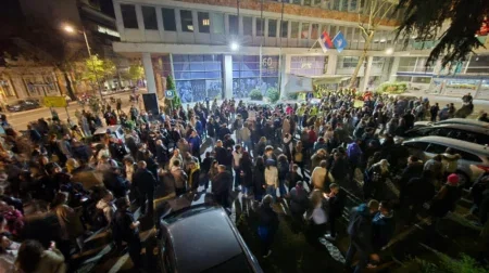 Пред зградата на РТС на улицата „Таковска“ околу 22 часот се собраа студенти поради незадоволство од известувањето на Јавниот сервис…