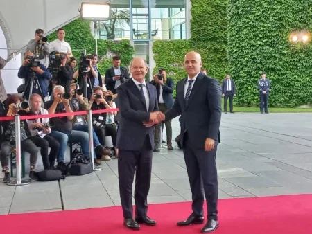 Германскиот канцелар Олаф Шолц со највисоки државни почести вечерва го пречека премиерот Димитар Ковачевски, кој е во дводневна официјална посета…