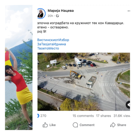 Марија Нацева, кандидатка на ВМРО-ДПМНЕ за градоначалник на Неготино, со видео запис и текст се пофали дека почнала да реализира…