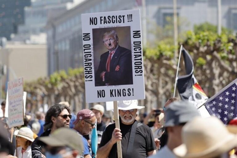 САД: „Власта му припаѓа на народот“, „Без кралеви“, … – протестни пораки до Трамп